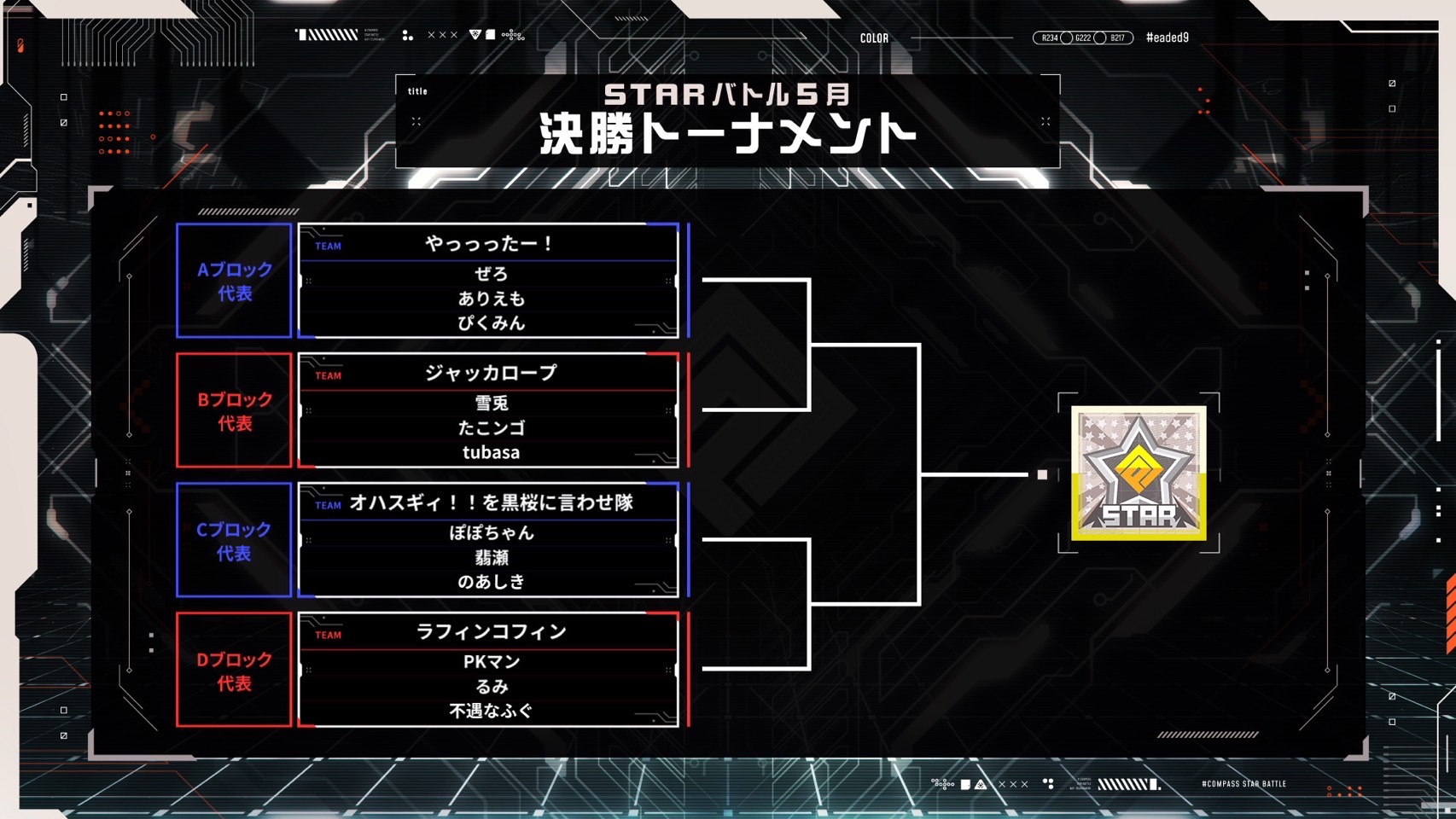 公式コンパス STARバトル on X: "STARバトルAブロック. やっっったー! Bブロック. ジャッカロープ Cブロック.オハスギィ!!を黒桜に言わせ隊 Dブロック. ラフィンコフィン 5月シーズン予選 終了! 配信は本日19:00から‼️ ▽配信URL‐niconico https:t.co。