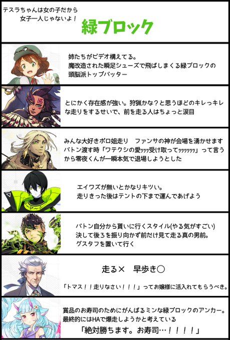 もか on X: "ヒーローの皆さんによる ロール混合!ブロック対抗リレー が始まりました。どのブロックを応援しますか?※独断と偏見コンパスhttps:t.co 8fTUb49lxu"X。