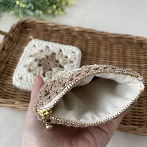 グラニースクエアポーチ ファスナーポーチ ポーチ モチーフ編み コットン素材 ナチュラル - 𝖪𝗈𝗌𝖾𝗅𝗂𝗀.𝗄𝗇𝗂𝗍 -コーシェリ・ニット -minne byGMOペパボ 国内最大級のハンドメイド・手作り通販サイト。