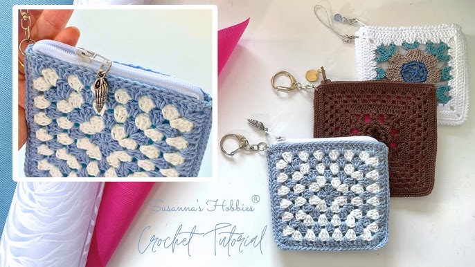 かぎ針編み 100均 レース糸でグラニースクエアのミニモチーフ★ファスナーポーチ おしゃべり作業動画。