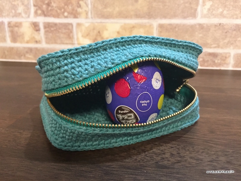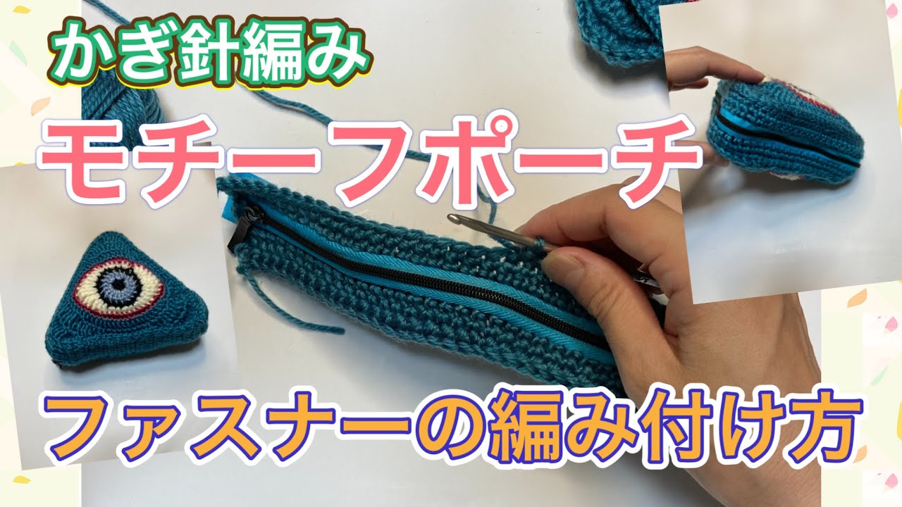 かぎ針編みポーチ モチーフにファスナーを付けて完成させます・都市伝説ポーチ。