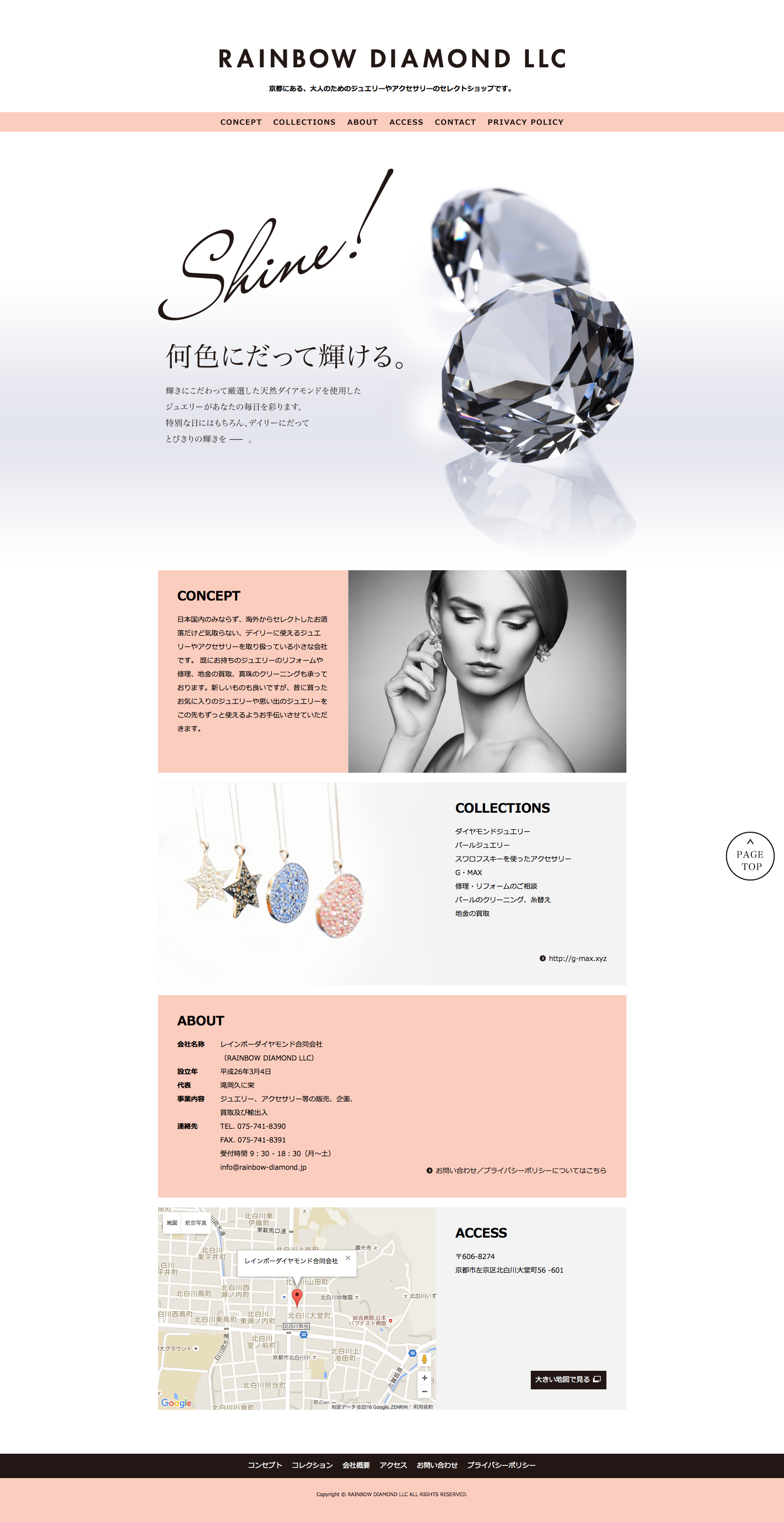 アクセサリー販売会社 コーポレートサイト・名刺京都広告デザイン.com。