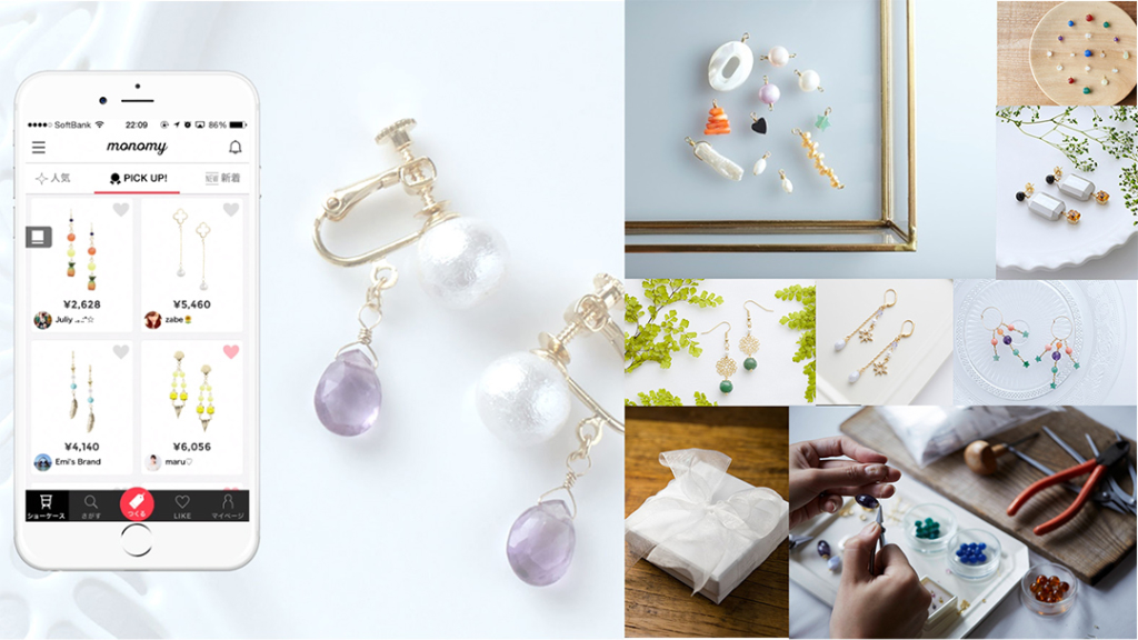 材料・技術不要!スマホ上の操作でアクセサリーをデザインし販売できる モノ作りの新しいカタチ「monomy モノミー 」みんなでつくるハンドメイド情報サイトホビースタイルHobbyStyle ホビスタホビー協会。