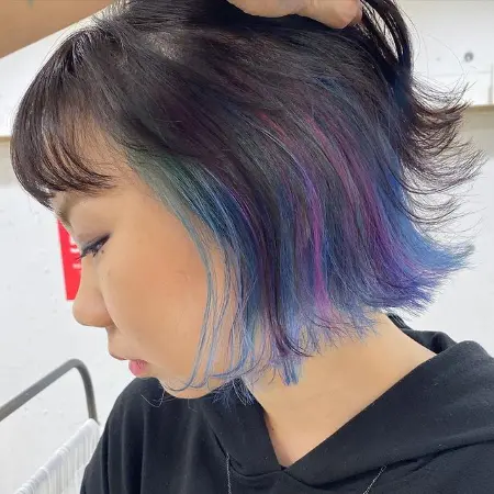 Blue × Violet🪼 青から紫のグラデーションインナーカラーインナーカラーインナーカラーボブインナーハイトーンインナー グラデーションインナーブルーインナーバイオレットケアブリーチケアハイトーン松本市ケアハイトーン。