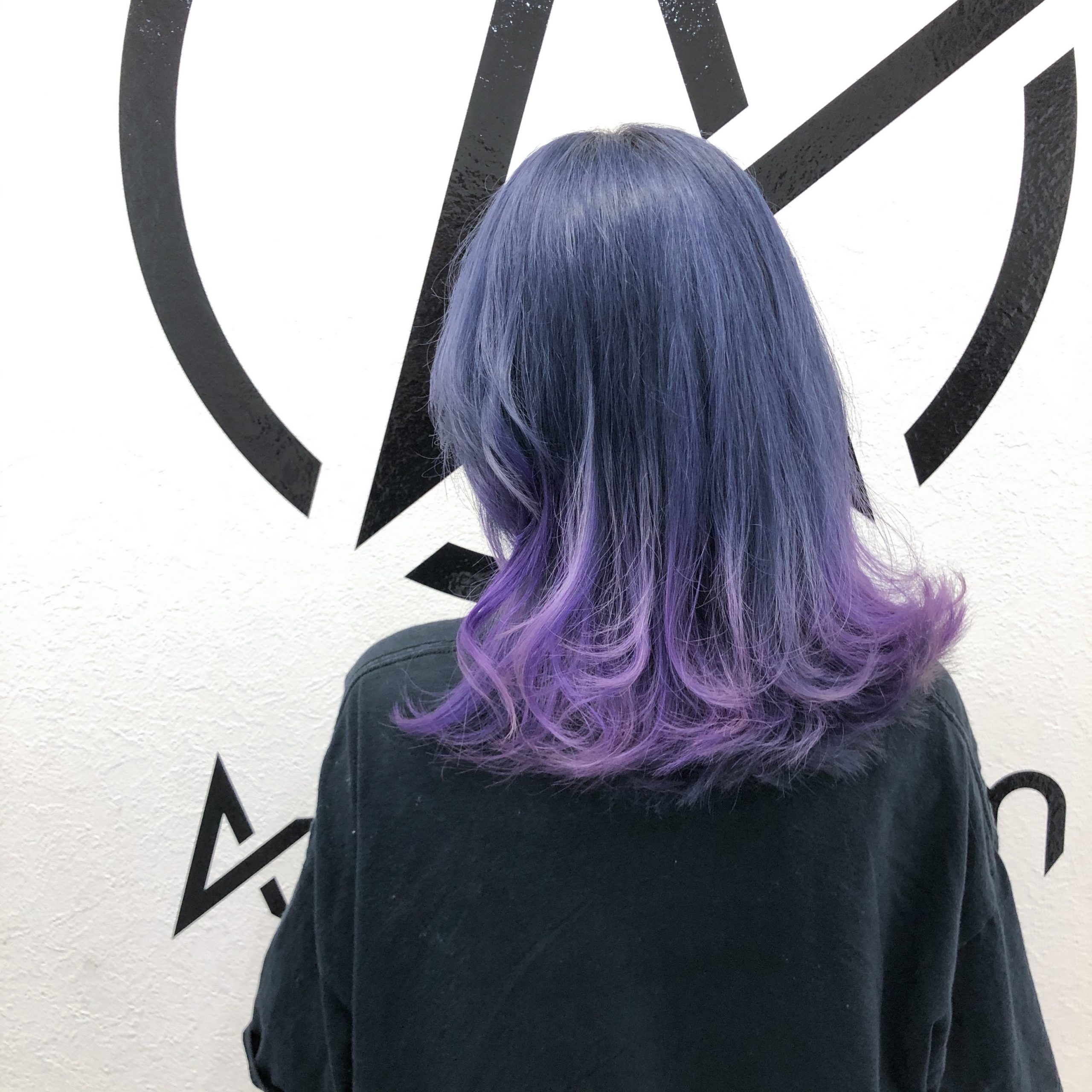 ちーば。さんはInstagramを利用しています:「毛先にネイビー+アクセントに紫。グラデーションカラー グラデーションヘアー 裾カラーネイビー パープル アッシュ ブリーチ ケアブリーチ マニパニ 個性派 カラー 浜松 美容院」。