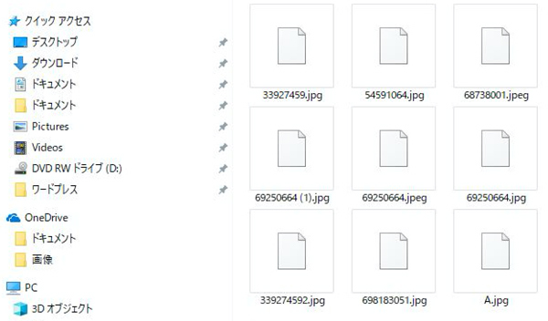 フォルダー内の画像がファイルアイコンで表示されて縮小版表示にならないWindows 10初心者のためのOffice講座。