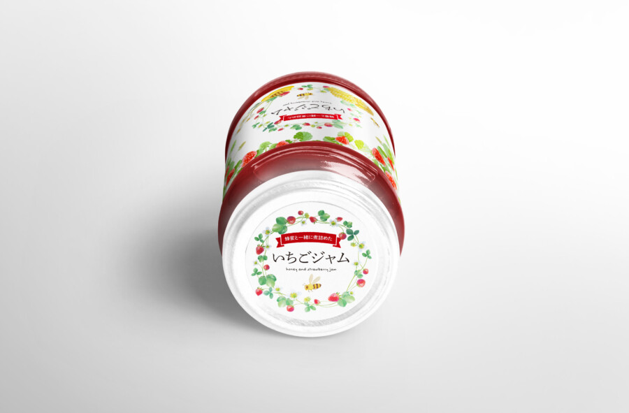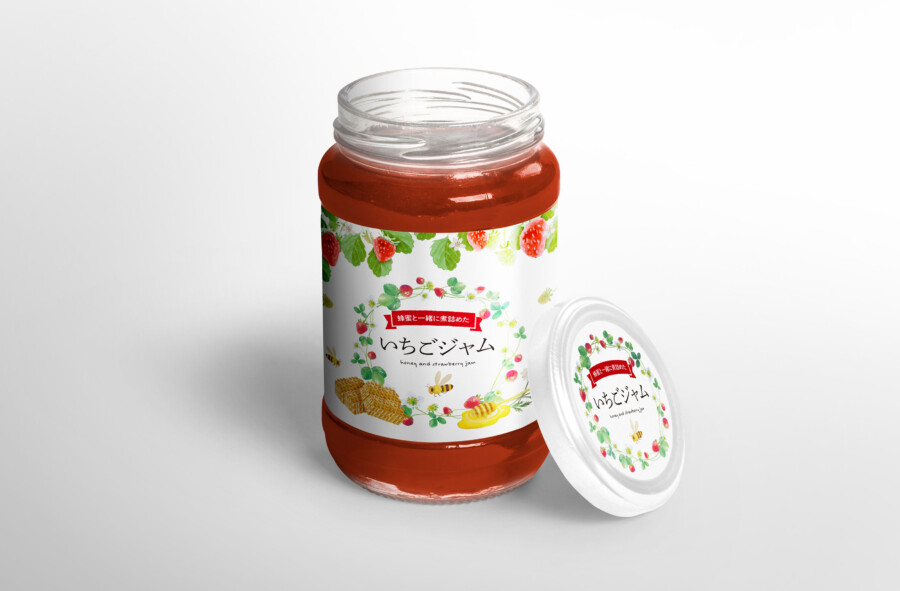 ラベルデザイン制作事例 - 蜂蜜&イチゴジャムの可愛い商品ラベルASOBOAD。