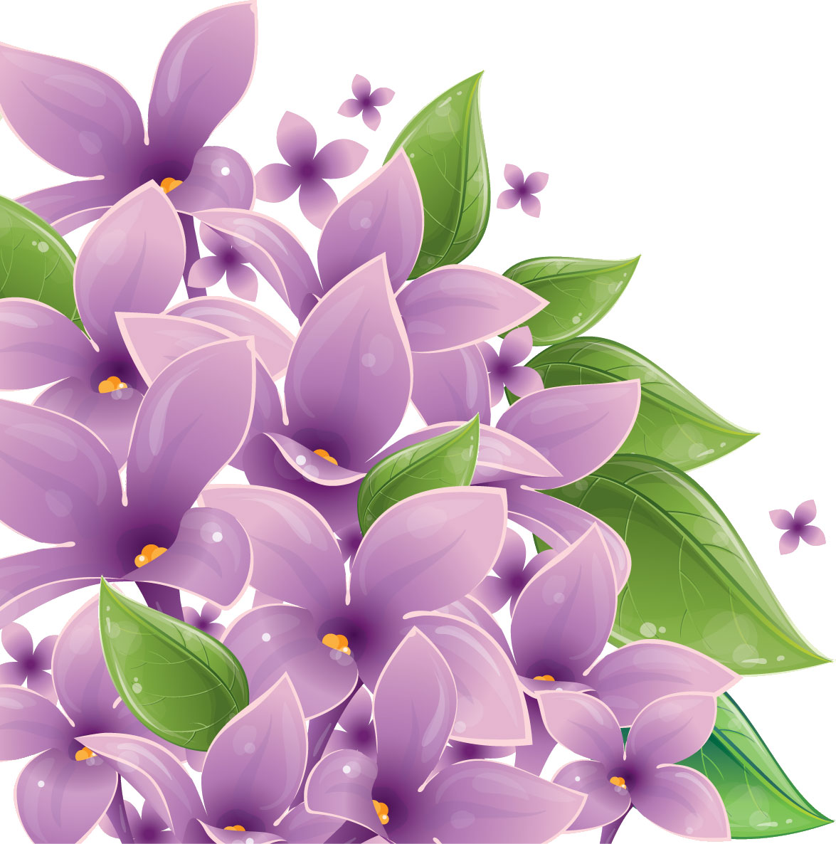 紫色の花のイラスト・フリー素材 No.361『紫・葉』。