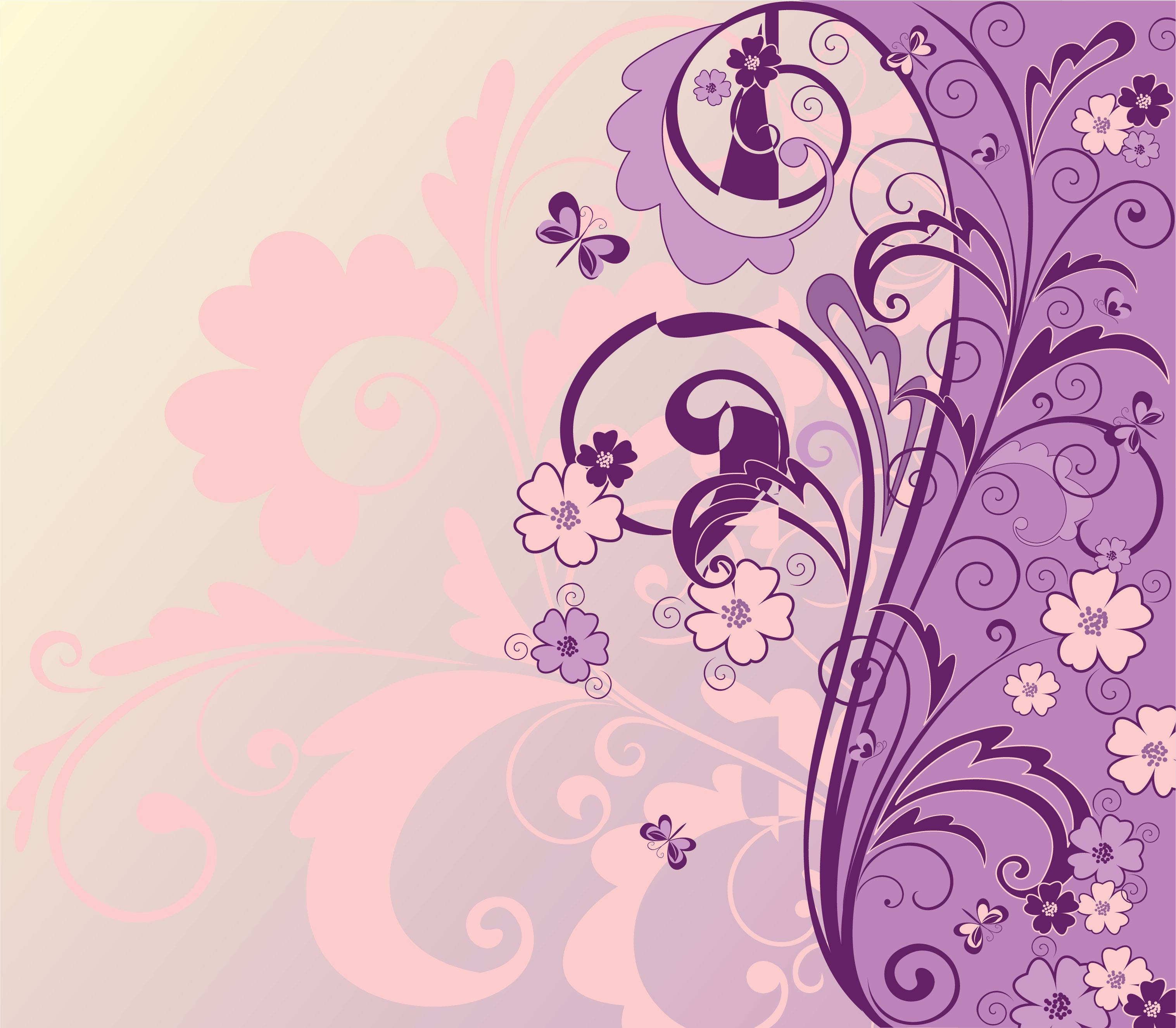 紫色の花のイラスト・フリー素材 背景・壁紙No.512『紫とピンク・S字ライン』。