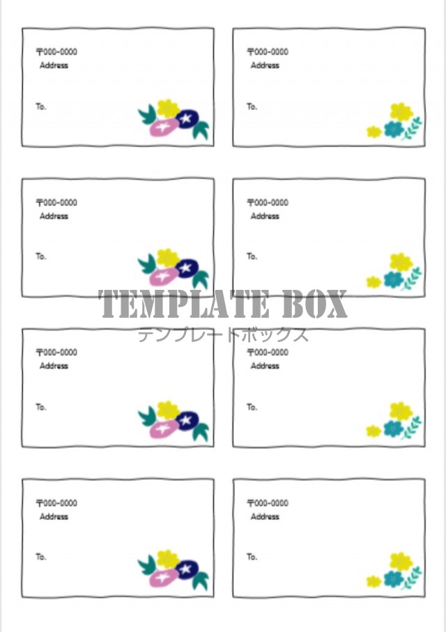 封筒やハガキに貼ると便利な宛名のテンプレート☆お花のイラストが入ったかわいいデザイン!無料テンプレートTemplateBox。