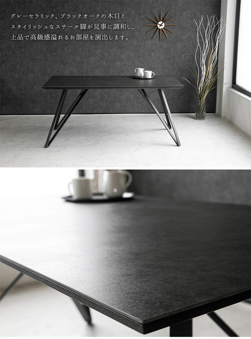 lushroom ダイニングテーブル 160×90cm 4人掛け セラミック ブラックオーク 突板 スチール脚 ブラック –lushroom-ラッシュルーム- 高級感のある家具を開梱設置でお届け。