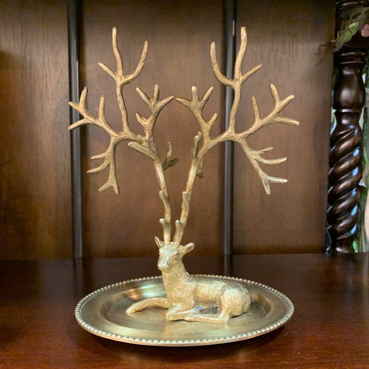 立派な角の鹿 ジュエリーホルダー、ラック 真鍮製 アクセサリースタンド 豪華 金 ゴールド 華やか。