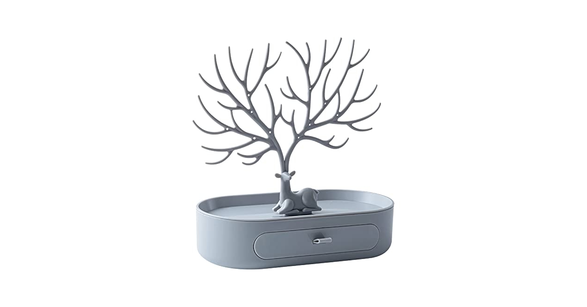 Amazonジュエリーホルダー 鹿のディスプレイスタンド ツリー型 アクセサリー用 収納ボックス付き ネックレス ピアス イヤリング ブレスレット指輪 収納 ディスプレイ おしゃれ 鹿の角飾り プレゼントグレー 収納ケース付きジュエリー収納 オンライン通販。