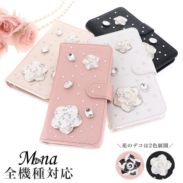 楽天市場 スマホケース 手帳型 ほぼ 全機種対応 デコ 花柄 Google Pixel9a カバー iPhone17 AQUOS sense9SH-M29 らくらくホンf53e ほか 花モチーフ ビジュー デコケース スマホケース 花柄 綺麗 かわいいゴージャスなキラキラスマホケースチャーム 携帯ケース。