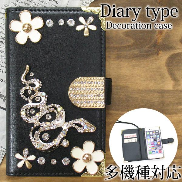 爆買 全機種対応 iPhoneSE AQUOS ケース 手帳型 デコ ゴージャス ヘビ 花 レザー調 黒 de211 : ケースカバーのtomsawyer- 通販 - Yahoo!ショッピング。