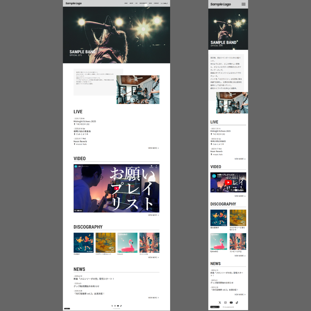 Studio版テンプレート販売開始!zousanrecordsバンド、ミュージシャンのホームページ作成を簡単に。