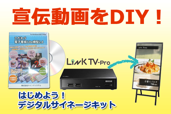 宣伝動画が自分で作れるソフト「こだわり電子看板Lite」と 店頭用サイネージプレーヤー「LinkTV-Pro」をセットで限定販売!株式会社イプロプレスリリース配信代行サービス『ドリームニュース』。