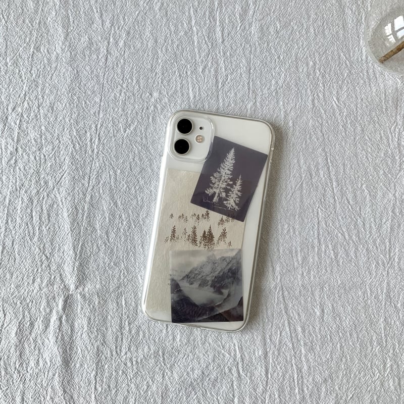 N028 霧の森seriesiPhoneステッカーケース アレンジ iPhone14クリアケ。