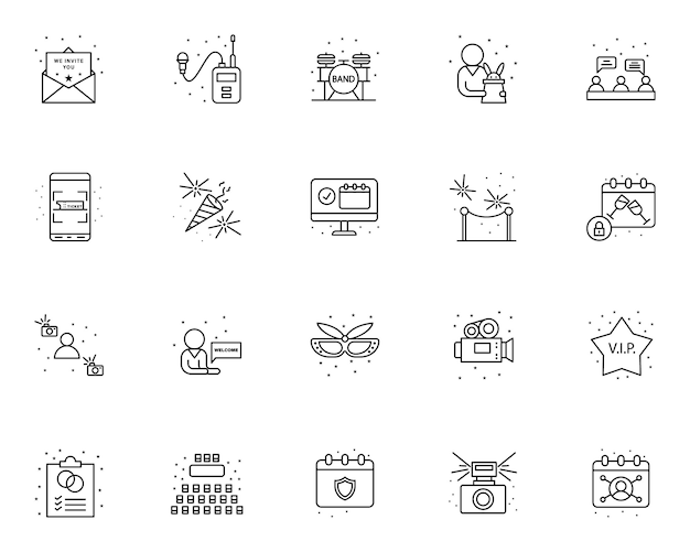 イベントラインベクトルのアイコンと記号 お祝い 集まり ショー フェテ コンサート 機能ベクトルアウトラインイラストセット ストックベクター©iconsgraph 645986352。