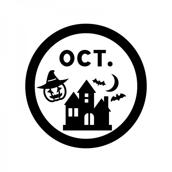 10月のイベントアイコンのシルエット無料のAi・PNG白黒シルエットイラスト。