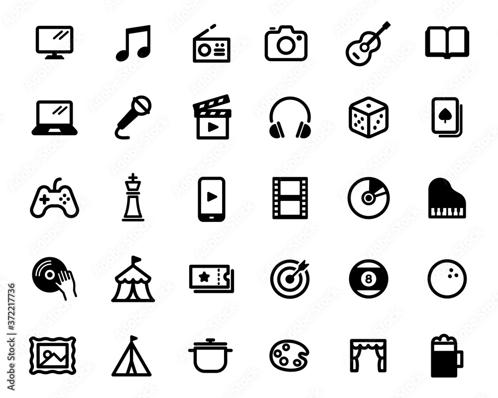 エンターテイメントのシンプルなアイコンのセット 遊び ゲーム 趣味 イベント 音楽 の Stock イラストAdobe Stock。
