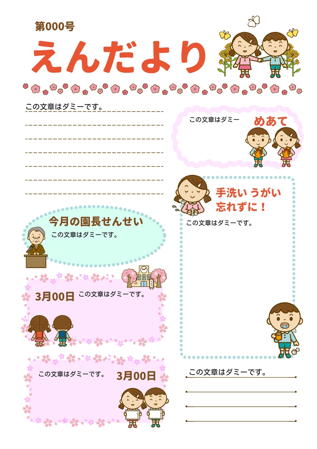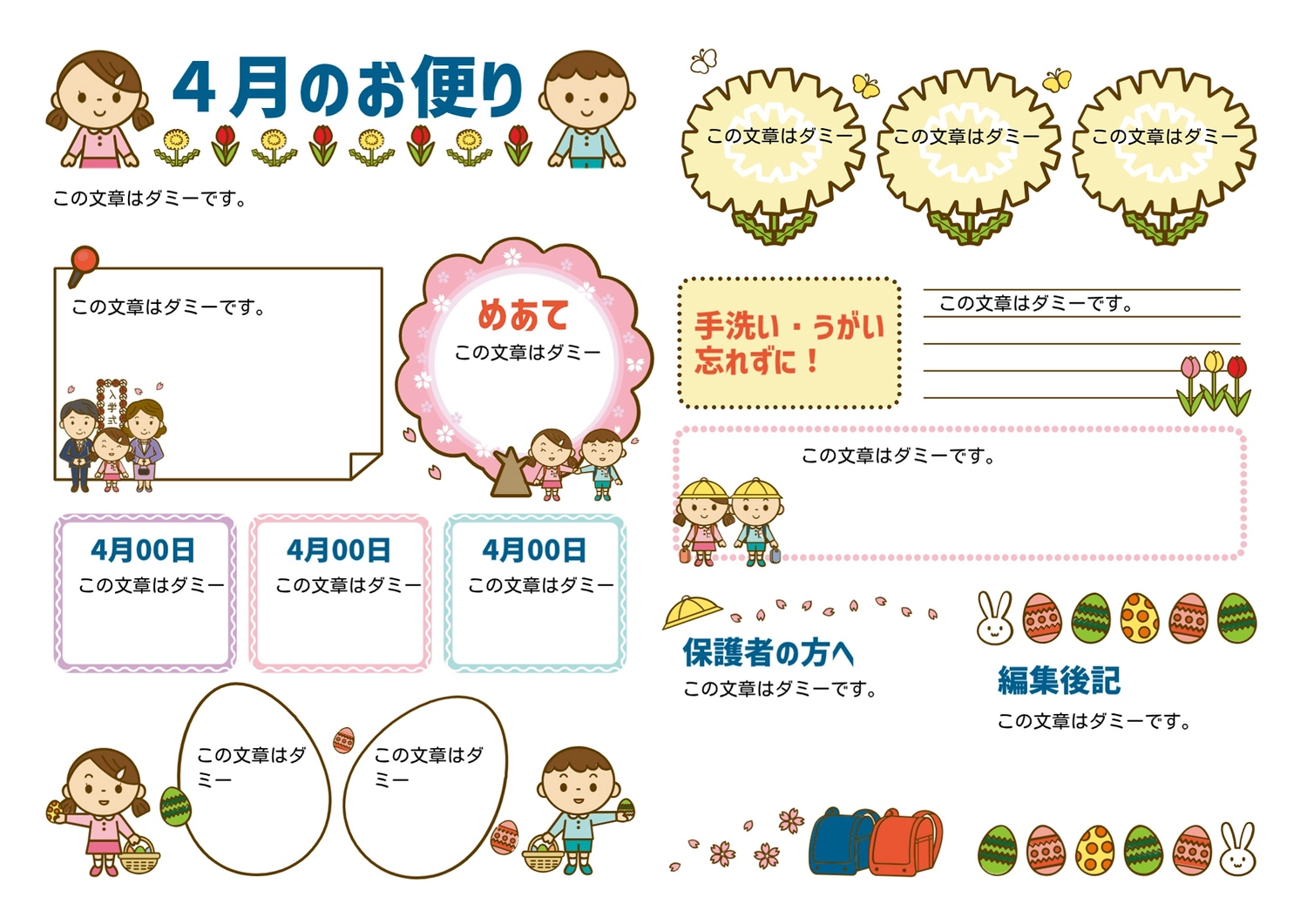 4月の園だより 子供イラスト の無料おたよりテンプレート 18980 - デザインAC。