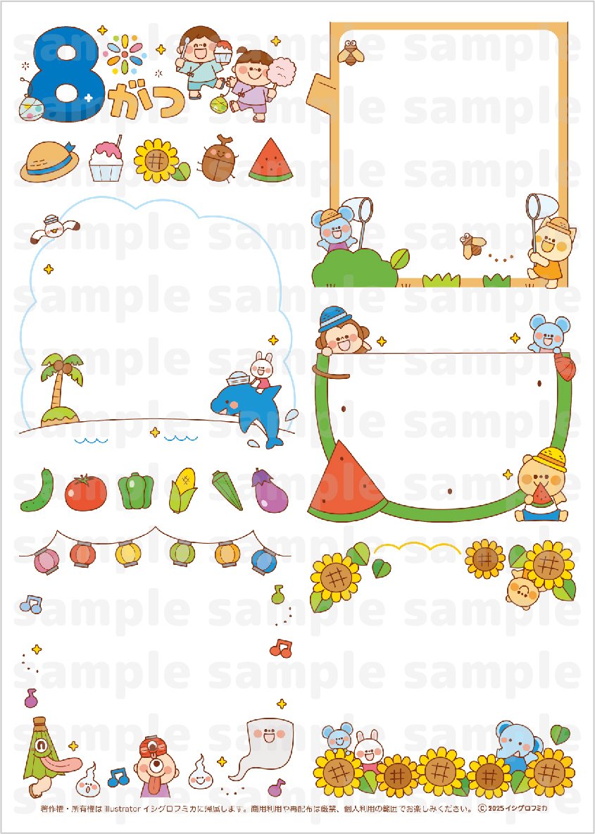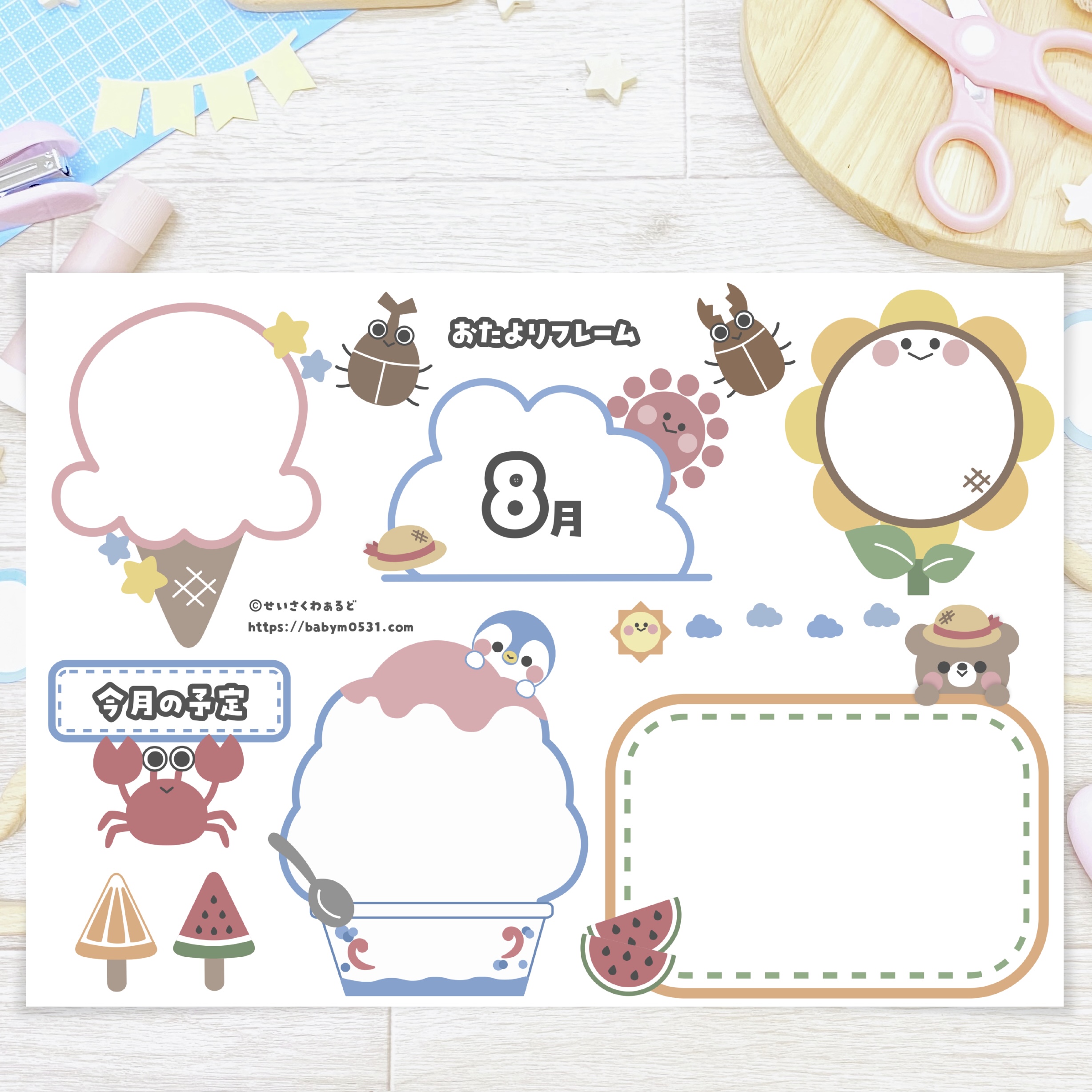 8月のお知らせ枠・フレームイラスト 夏休み園だより、おたよりで使えるかわいいイラストの無料素材集 イラストだより。