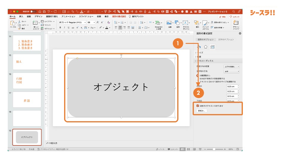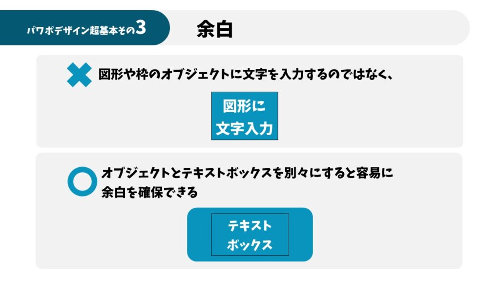 パワーポイントで図形の中に文字を入力するときのやり方・デザインのポイント・注意点をデザイナーが詳細解説。ビズデザ。
