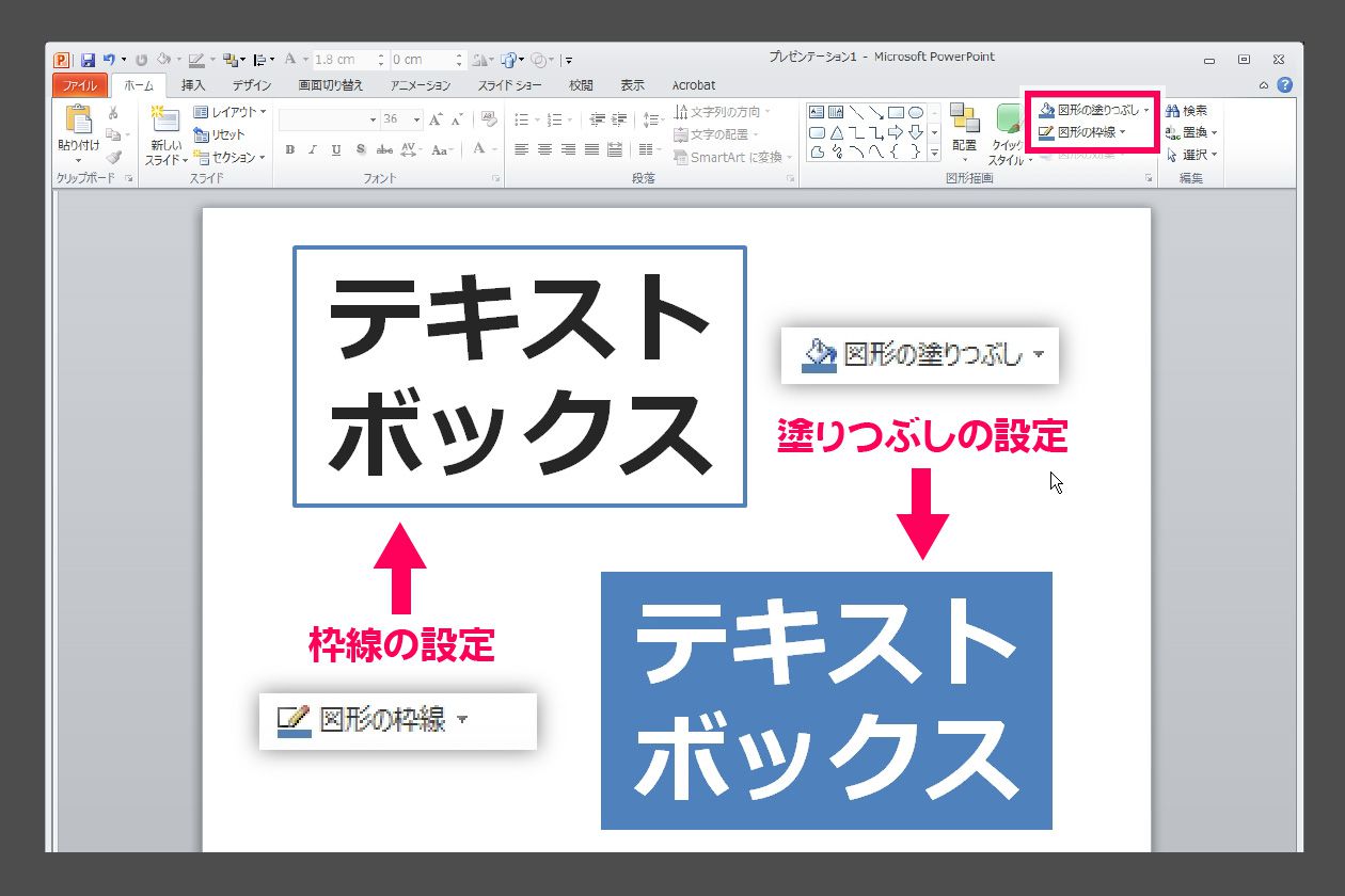 PowerPoint 2010:テキストボックスの枠線スタイルを変更するには。