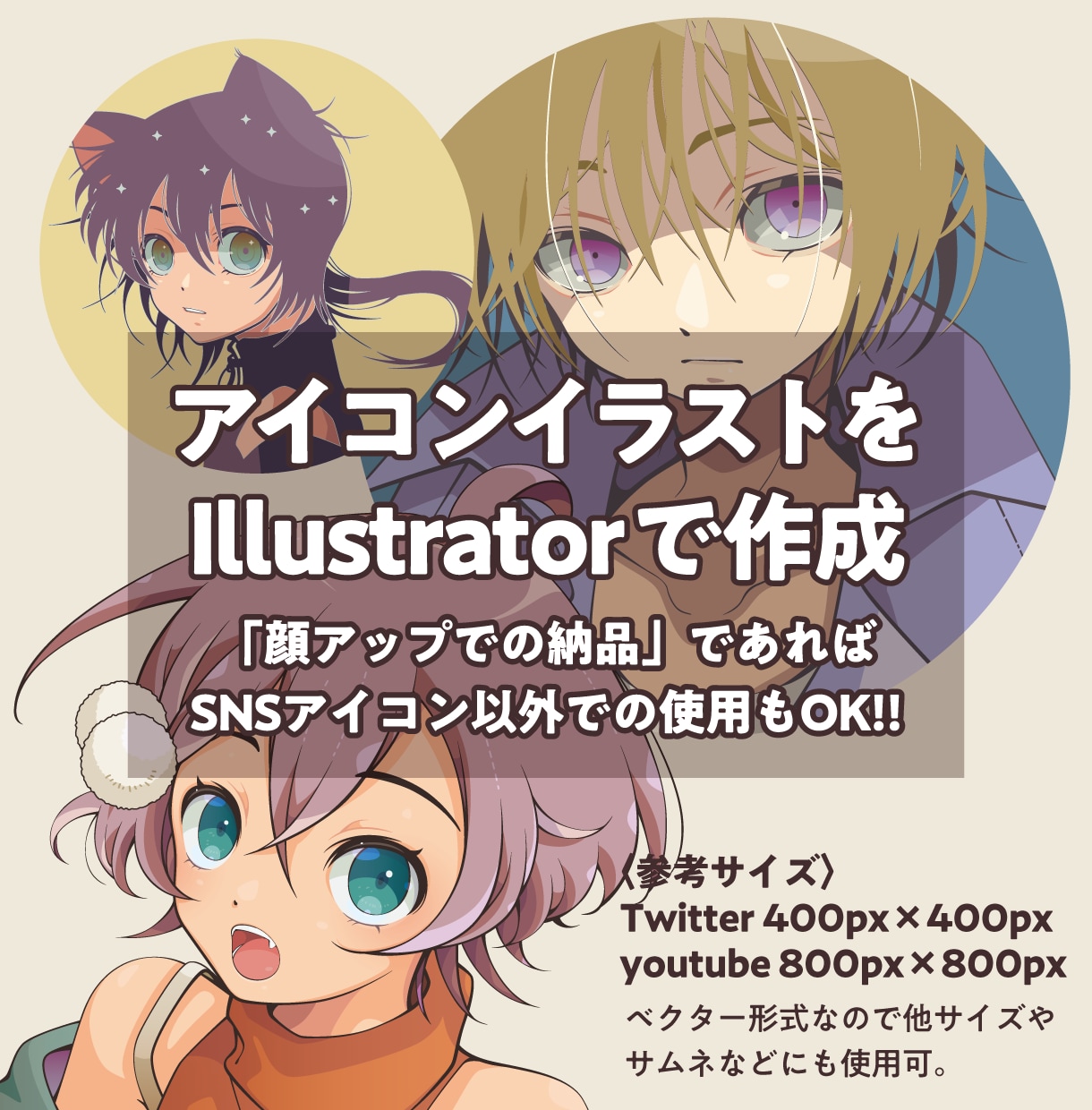 SNSアイコンをIllustratorで作成します バストアップイラストをIllustratorで作成ココナラ。