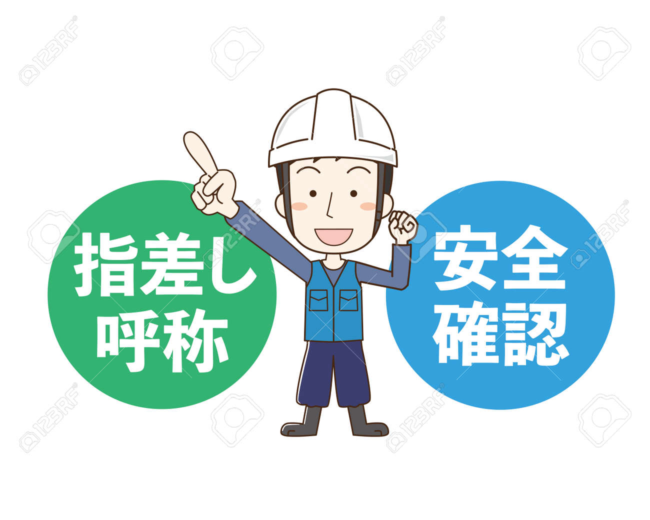 指差し確認してヨシと確認の掛け声を出すヘルメットを被った男性作業員のイラスト素材73102322- PIXTA。