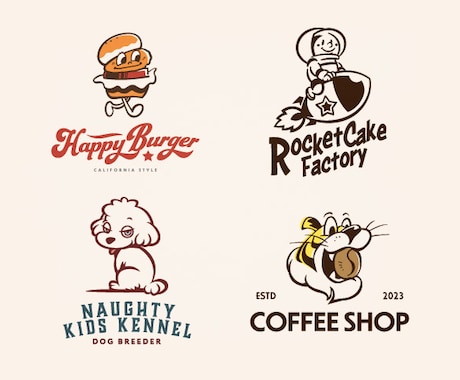 アメリカン・ビンテージ・キャラクターロゴ制作します イラストで印象付ける、他にはないオリジナルなロゴココナラ。