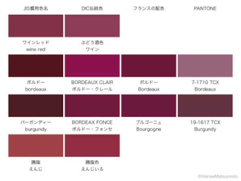 ワインレッド Wine Red の色見本・カラーコード色彩図鑑 色の名前と色見本一覧。