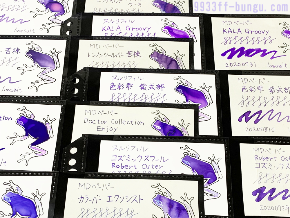 よくばりインク色見本帳 「紫と蛙」〜パープル・バイオレット系の万年筆インク62種類をいろんな紙に書いて手作りするよ〜\むらさきぶんぐ〜紫文具。