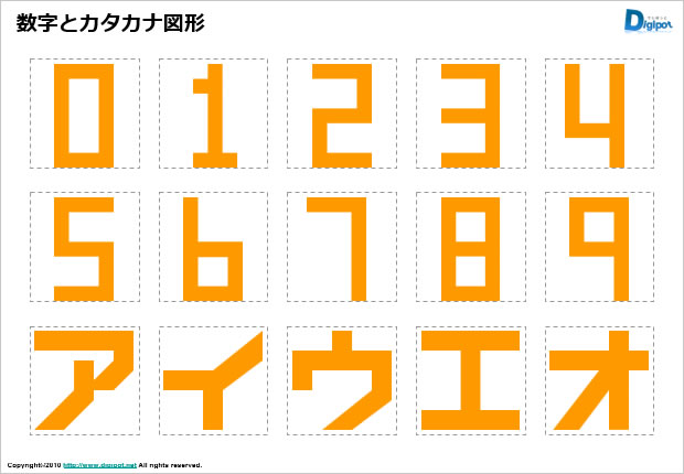 カクカクのカタカナ数字パワポ図形フォント パワーポイントフリー素材、無料素材のDigipot。