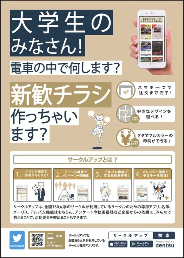 スマホで作れる新歓チラシ!」大学生向けのサービスを開始 広告付きなら3,000枚まで無料作成・印刷が可能に株式会社ユーキャンパスユース。