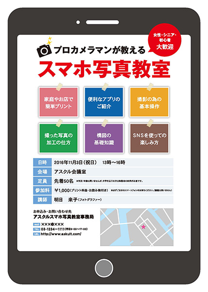 スマホ写真教室の無料チラシテンプレート-パワポンbyアスクル。