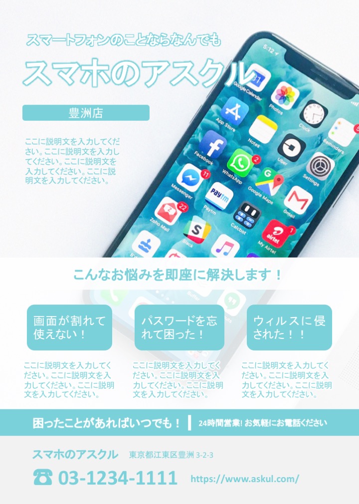 スマホで使える無料チラシ作成アプリ3選とチラシ作成のコツを紹介。