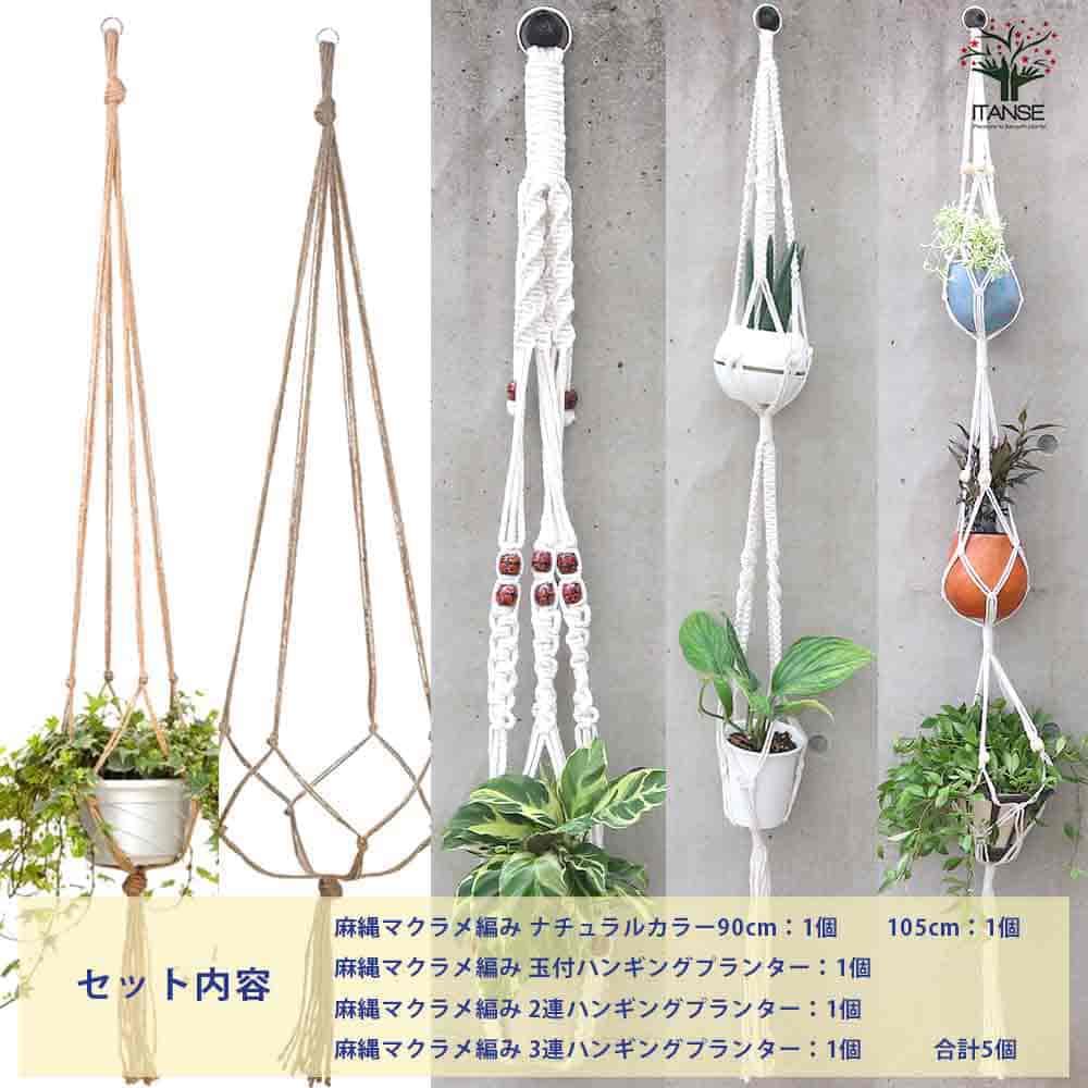麻縄マクラメ編み プラントハンガー5種類セットハンギング資材植物のITANSE 全品送料無料・即出荷。