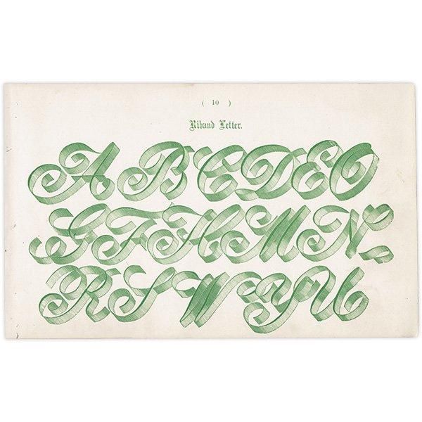 アルファベット Large Old English Riband 大文字 タイポグラフィ イギリス アンティークプリント 1900年 1037。
