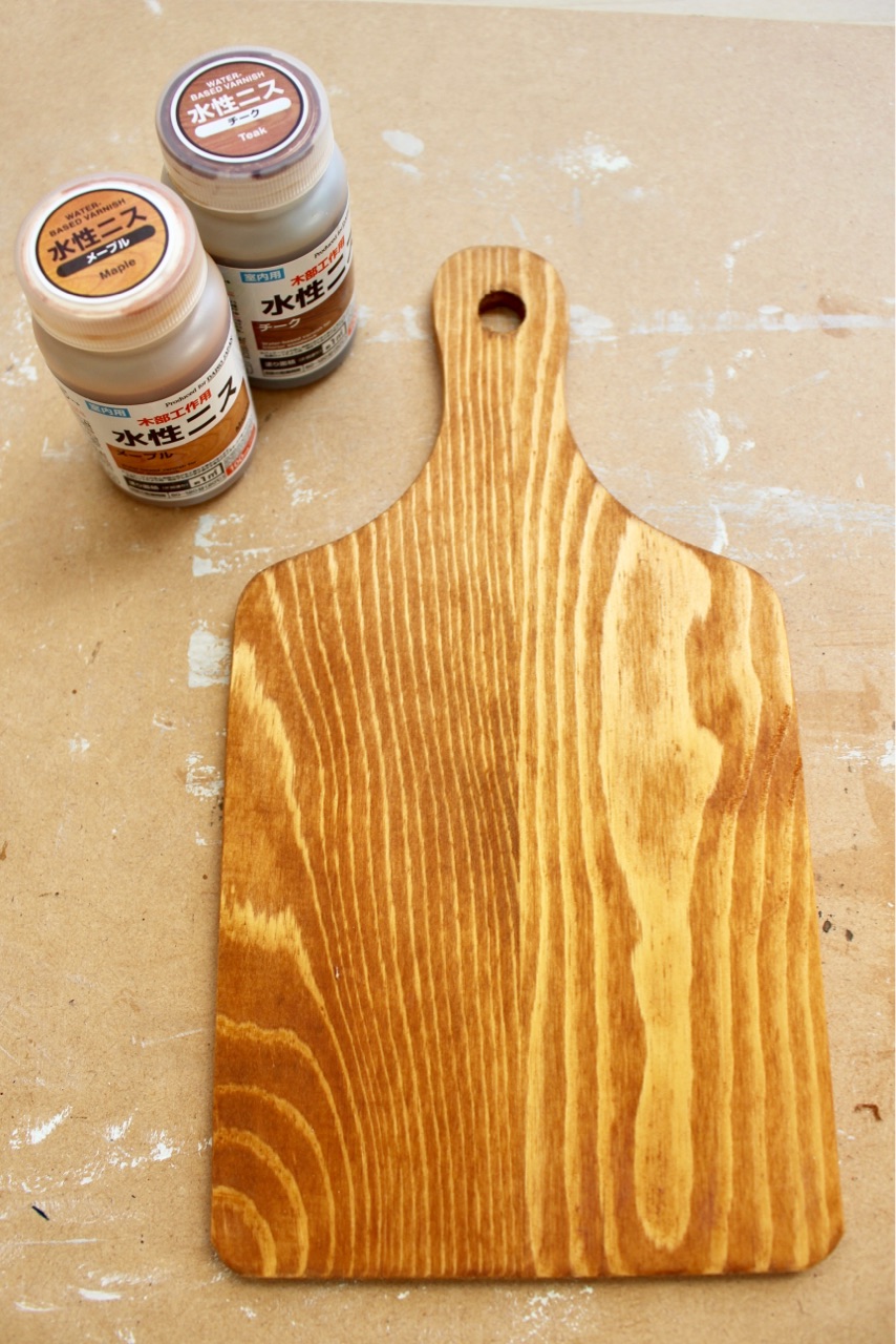 水性ニス2色混ぜでカッティングボードリメイク&キャンドゥのフェイクファーヤーン : elie's houseDIY100均リメイカーエリィの暮らし&レシピブログ。