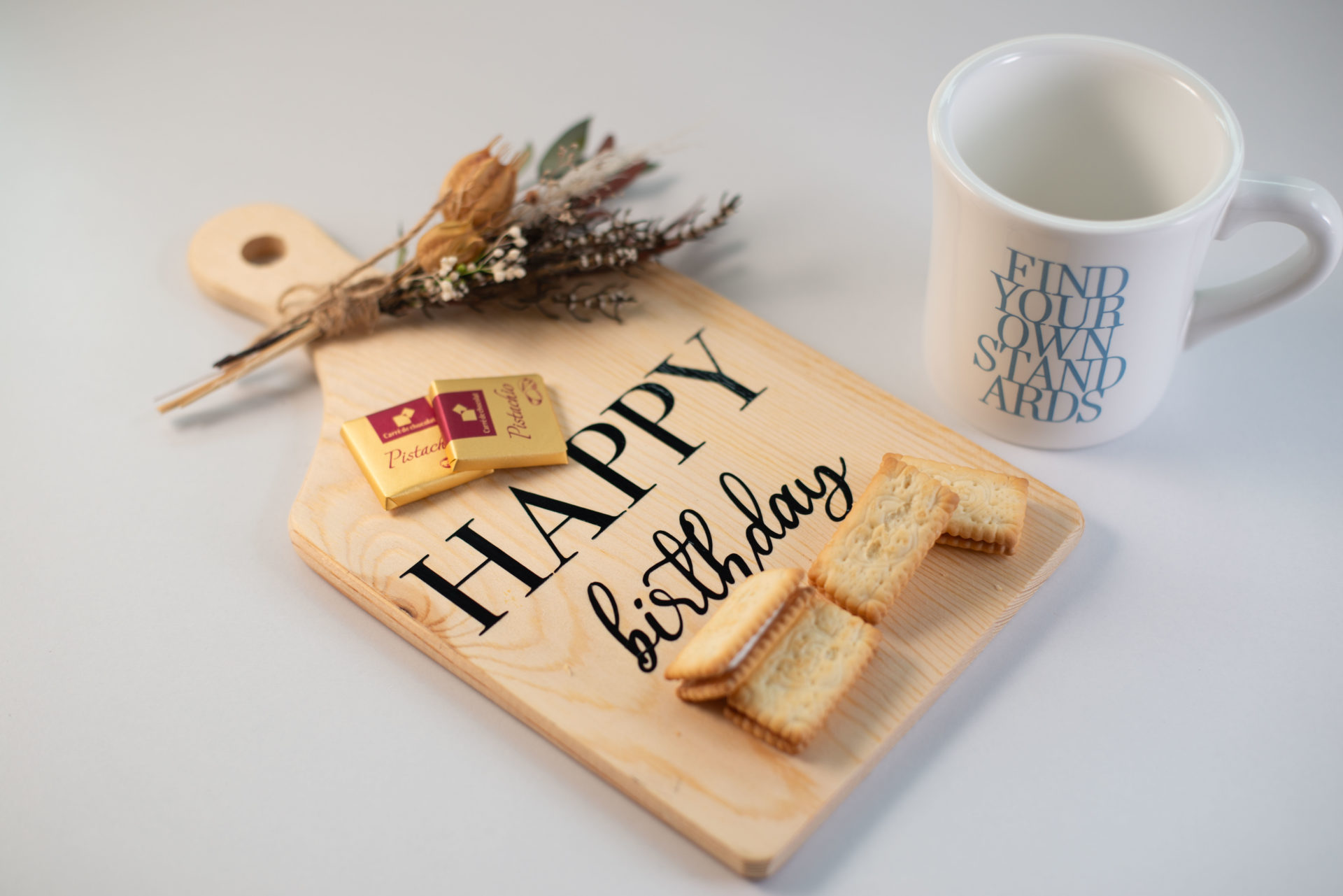 ダイソーの木製カッティングボードに名入れして、おしゃれに楽しもう。