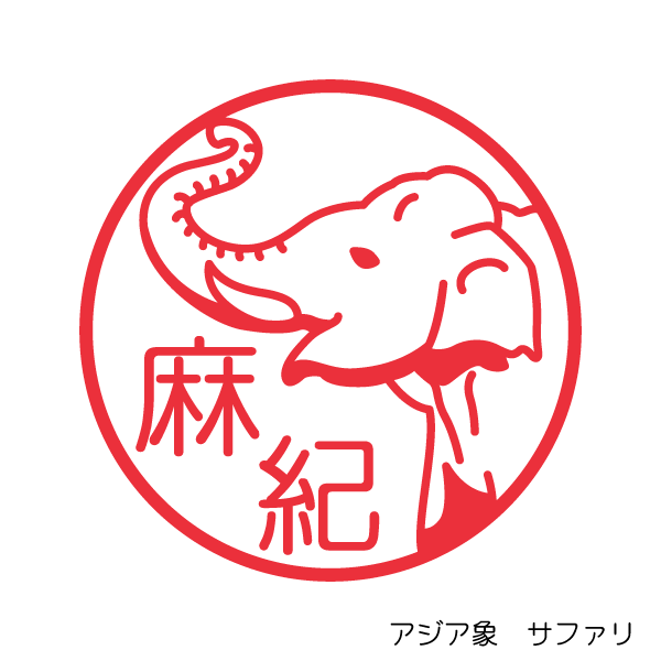 アジア象 サファリパークの動物のはんこ絵のはんこドットコム。