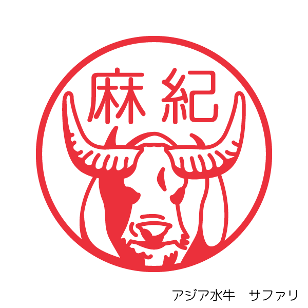 アジア水牛 サファリパークの動物のはんこ絵のはんこドットコム。