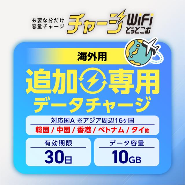 ポケットwifi 海外専用 追加データチャージ アジア周遊 韓国 台湾 中国 ベトナム タイ 16ヵ国。