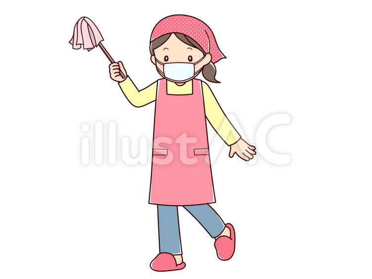 はたきで掃除をする主婦のイラスト素材9146773- PIXTA。