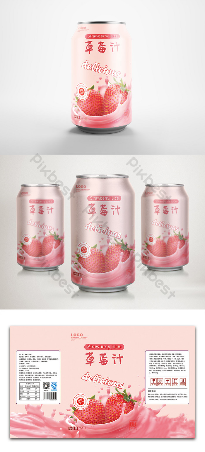 赤いイチゴジュースドリンク缶パッケージデザイン PSD 無料ダウンロード - Pikbest。