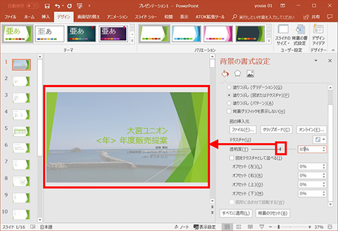 パワポ時短 スライドに背景画像を設定する方法。半透明にすれば文字も読みやすくできる!できるネット。