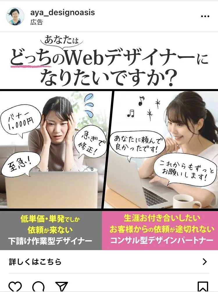 インスタ広告で効果があるデザインのコツ8つを参考事例をもとに解説フリーランスデザイナー・業務委託採用クロスデザイナ。