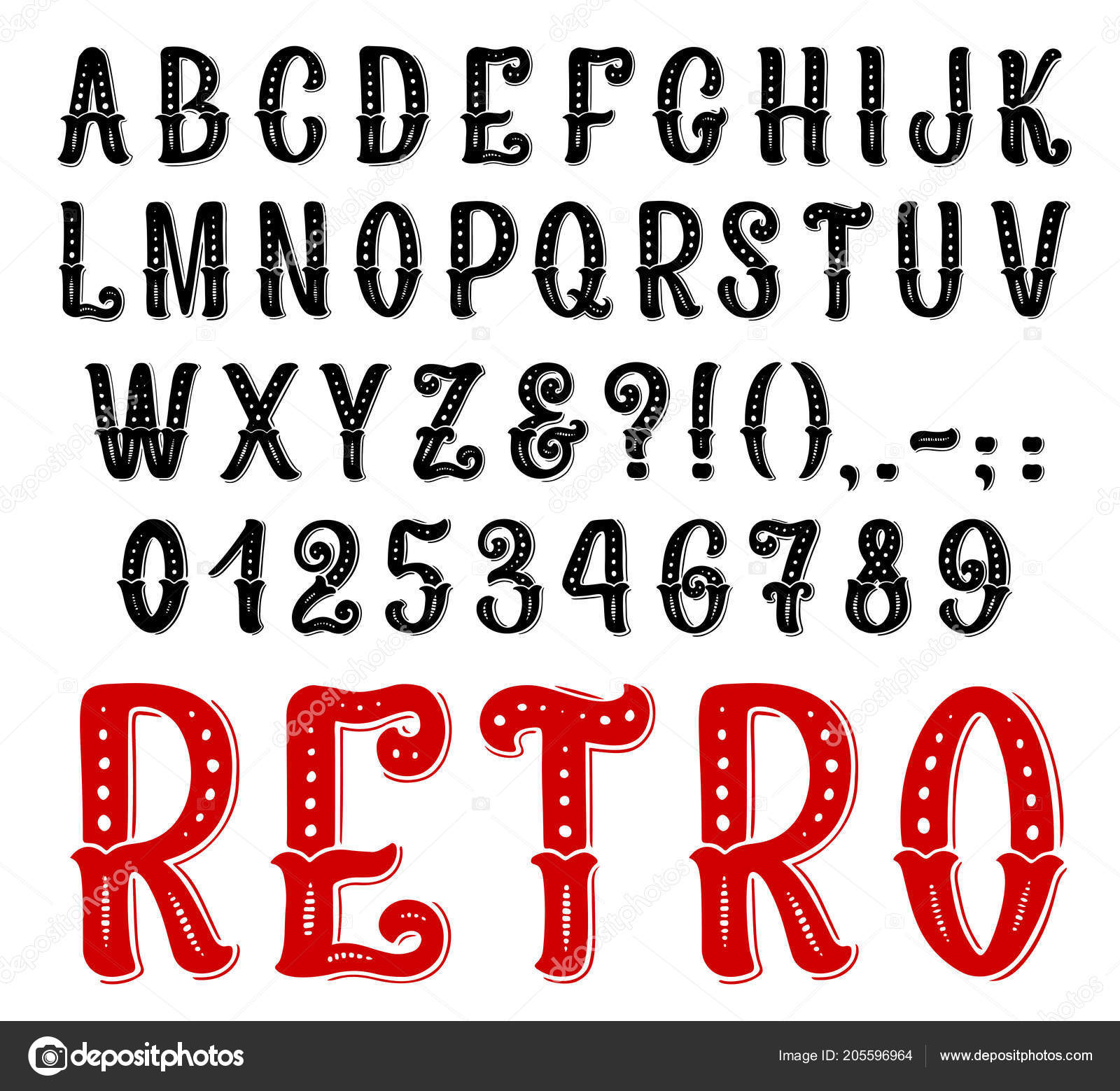 レトロな装飾的なフォント、完全な記号と文字 ストックベクター ©Seamartini 205596964。